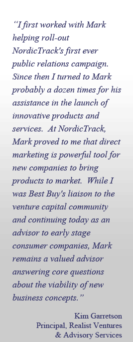 After leaving NordicTrack, I consulted with the company on major outbound and inbound telemarketing projects as well as helping NordicTrack begin and test its first infomercial. I set up and managed five outbound service bureaus who called over 300,000 customers. The inbound project created a more personalized, custom sales approach for high volume TV leads resulting in higher conversions.