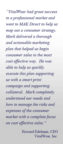 Because the report was clear, focused, and specific in its recommendations, the company hired me to execute many of the ideas presented. Over the next months, I worked with company management to solve many of the problems in sales approaches, database management, conversion techniques, media buying, and personnel issues. I also spearheaded the re-make of the infomercial, rationalized media buying, improved tracking and coding, and created and tested print, direct mail, and outbound telemarketing programs. The company’s business grew rapidly while margins increased.